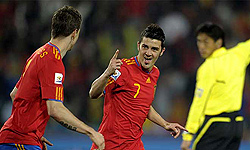 نيمه نخست با تساوي بدون گل خاتمه يافت اما در نيمه دوم داويد ويا گلزن اول اسپانيا در دقيقه 63 روي پاس ژاوي تنها گل اين بازي را به ثمر رساند تا اسپانيا ياران رونالدو را حذف كرده و به جمع هشت تيم برتر صعود كند.