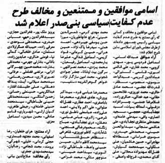 در میان اسامی موافیقان عدم کفایت سیاسی بنی صدر، نام برخی از چهره های سیاسی آشنا