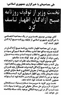1364: توقیف صبح آزادگان و اظهار تاسف نخست وزیر