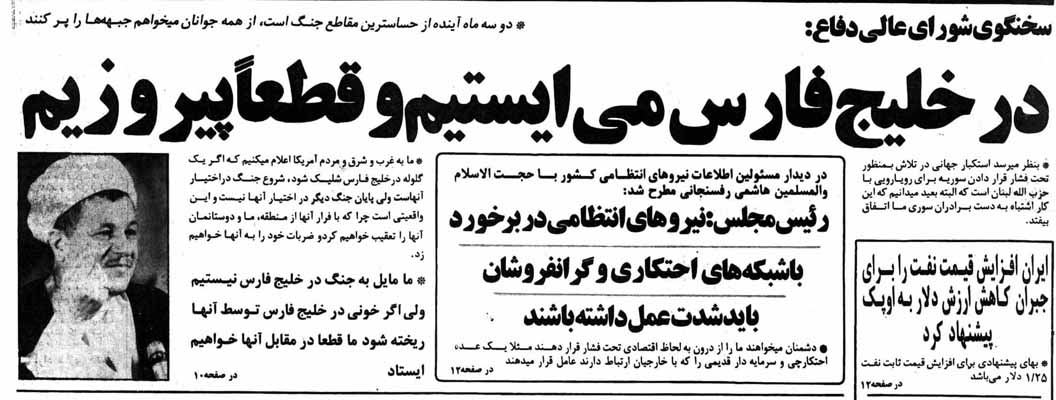 زد» هاشمی در ادامه یادآور می شود که ایران مایل به جنگ در خلیج فارس نیست اما اگر
