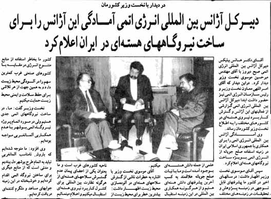 اول تیرماه 1368، هانس بلیکس دبیر کل وقت آژانس بین المللی انرژی اتمی به