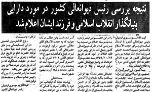 دیوان عالی کشور به اموال حضرت امام، به درخواست یادگار امام رسیدگی ور در تاریخ 12 تیرماه 1368 نتیجه را اعلام می کند. آیت الله موسوی اردبیلی، رئیس دیوانعالی کشور با مقدمه ای در پاسخ به نامه حاج احمد خمینی، یادگار امام(ره) که در شماره قبل به آن اشاره شد، ابتدا ضمن مقدمه ای متذکر می شود که بررسی و رسیدگی به اموال امام(ره) خواست دیوانعالی نبوده و صرفا در پاسخ به درخواست حاج احمد آقا و طبق قانون اساسی این رسیدگی انجام شده است.