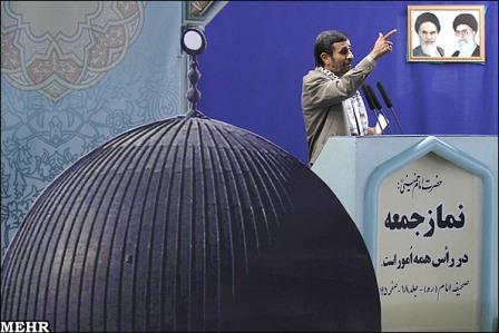 احمدی نژاد: میانجی ها خودشان شریک دزدندمحمود احمدی نژاد رئيس جمهور در سخنرانی پیش از خطبه های نماز جمعه با اشاره با اشاره به اهداف پنهان مذاكرات به اصطلاح سازش در آمريكا بر سر موضوع فلسطين، تأكيد كرد كه كساني كه به نام منجي آمدهاند خودشان شريك دزد هستند؛ بنابراين چطور ميتوانند ميانجي شوند و فضاي عادلانه براي مذاكرات ايجاد كنند؟