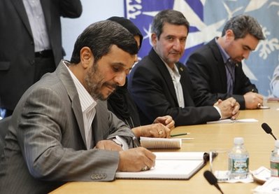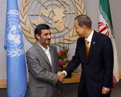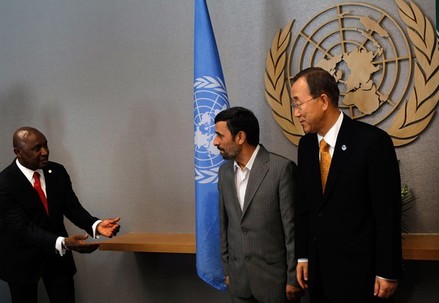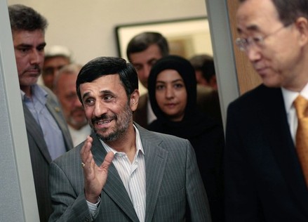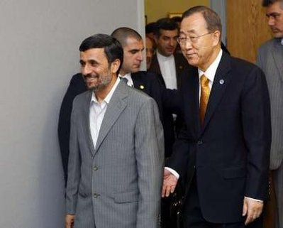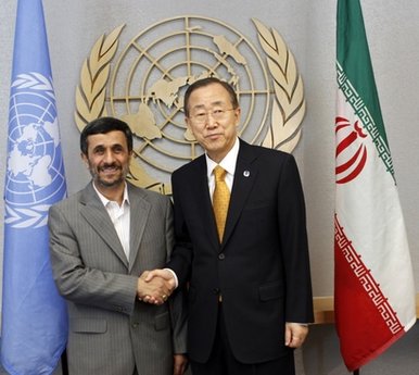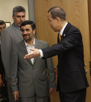محمود احمدي نژاد رئيس جمهور ايران ديروز با بان كي مون دبير كل سازمان ملل متحد در نيويورك ديدار كرد.