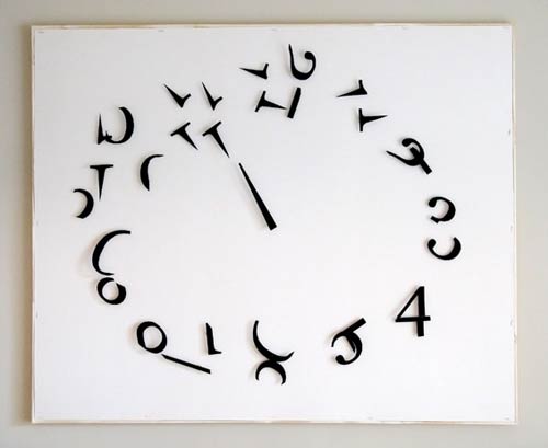 دو طراح خوش ذوق این ساعت عجیب و به هم ریخته را طراحی کرده اند. همین اعداد در هم ریخته به همراه تنها عقربه این ساعت که دقیقه شمار است، زمان را نشان می دهند. اگر با دقت به تصویر بالا نگاه کنید، ساعت ۳:۵۵ دقیقه نشان داده شده است.