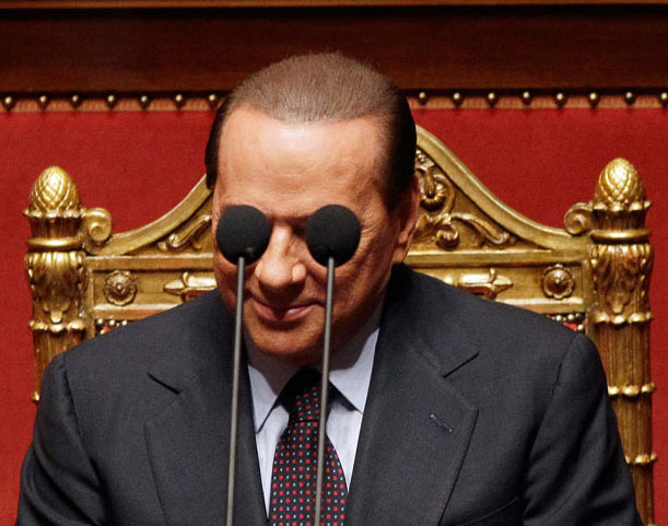 عکسی جالب از سخنرانی سیلویو برلوسکنی نخست وزیر ایتالیا در سنای این کشور