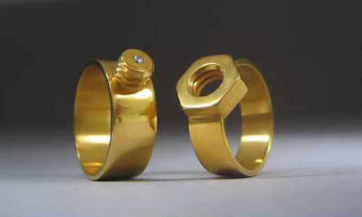 حلقه های ازدواج به شکل پیچ و مهره. این حلقه ها می توانند به هم چفت شوند!
