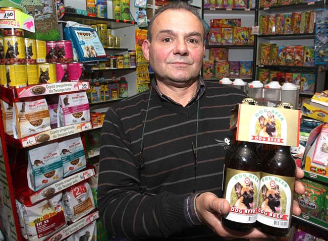 فروش یک نوع آبجوی بدون الکل برای سگ ها در فروشگاهی در شهر لودز لهستان