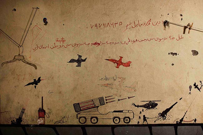 دیوار نوشته ای ضد آمریکایی که از طالبان بر جای مانده هم اکنون نیز بر دیوار یکی از مکان های فرماندهی نظامی آمریکا در موسی قلعه ولایت هلمند افغانستان به چشم می خورد