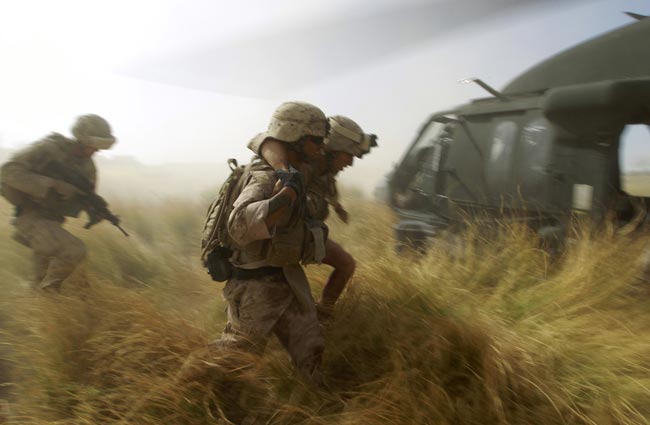 انتقال یک سرباز زخمی آمریکایی به هلی کوپتر در هلمند افغانستان