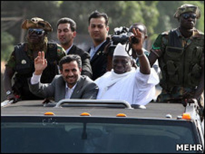 احمدی نژاد در کنفرانس خبری مشترکی که یحیی جامه، رئیس جمهوی گامبیا، در آن حضور داشت، گفته بود: "جمهوری اسلامی ایران مصمم است روابط و همکاری های خود را در همه زمینه ها با گامبیا گسترش دهد و هیچ محدودیتی هم برای توسعه این روابط نداریم!"