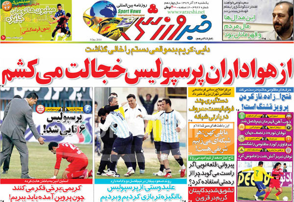 صفحه نخست روزنامه هاي ورزشي امروز (عكس)