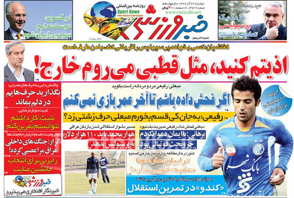 صفحه نخست روزنامه هاي ورزشي امروز (عكس)