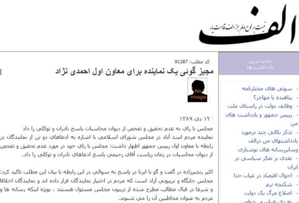 تصویر: تیتر سایت الف برای یك نماینده!