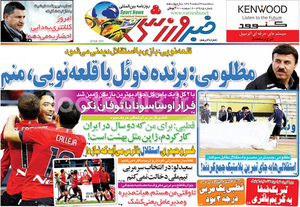 صفحه نخست روزنامه هاي ورزشي 3 اسفند (عكس)