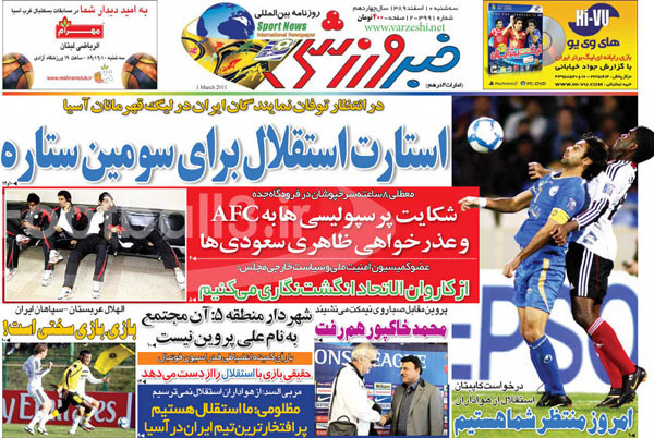صفحه نخست روزنامه هاي ورزشي 10 اسفند (عكس)