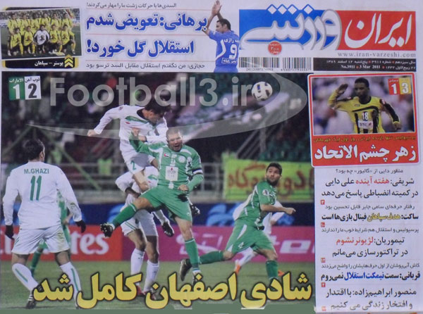 صفحه نخست روزنامه هاي ورزشي 12 اسفند (عكس)