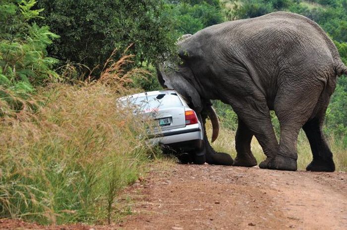 عاقبت سبقت گرفتن از یک فیل! (عکس)