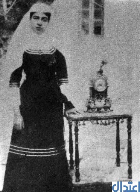 عکسی نایاب از زهراسلطان شاهزاده عزت السلطنه دختر مظفرالدین شاه قاجار و نوه امیرکبیر و همسر اول میرزا عبدالحسین فرمانفرما که در این عکس با لباس تیره و بلند، روسری به سر ودر کنار یک ساعت دیده میشود .