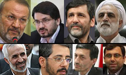 1_ منوچهر متكي:گفته ميشود او تا قبل از انتخابات دولت نهم، در كنار چهرههايي همچون علي لاريجاني و احمد توكلي قرار داشته است و در مورد انتصاب او به عنوان وزير خارجه احمدي نژاد نيز گمانهزنيهاي بسياري وجود دارد.