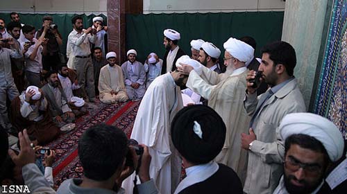 عمامه گذاری توسط آیت الله مکارم (عکس)
