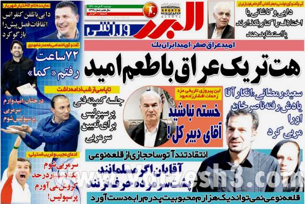 صفحه نخست روزنامه های ورزشی امروز (عکس)