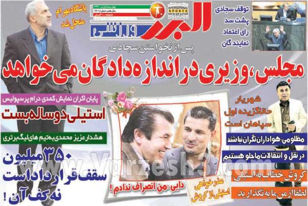 صفحه نخست روزنامه های ورزشی امروز (عکس)