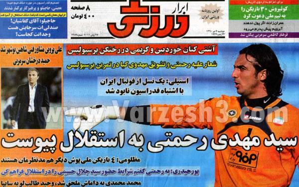 صفحه نخست روزنامه های ورزشی امروز (عکس)