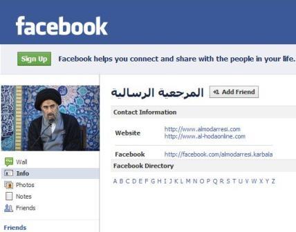 شیعه آنلاین: بررسی های انجام شده خبرنگار ما حاکی از آن است که در حال حاضر تنها مرجع تقلیدی که در سایت اجتماعی facebook صفحه دارد، حضرت آیت الله سید محمدتقی مدرسی است.