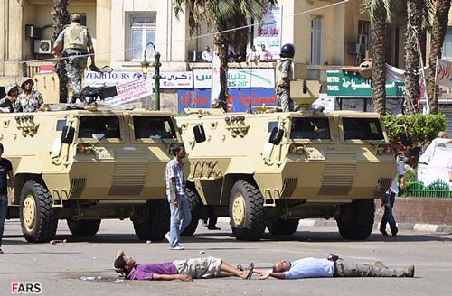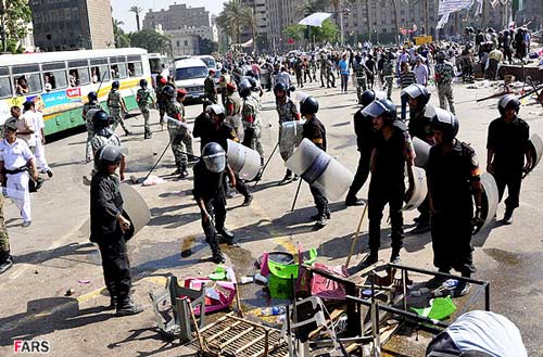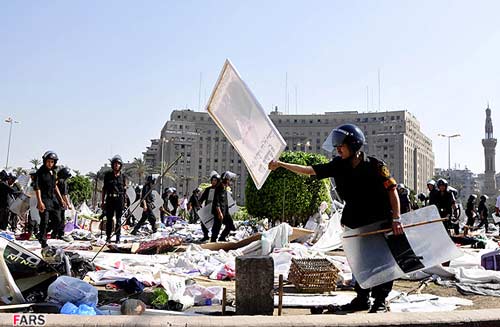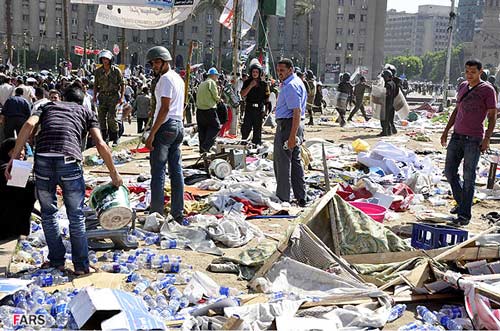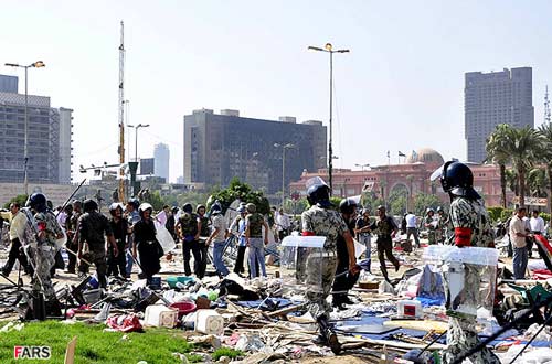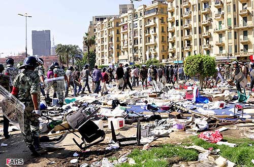 تصاوير ارسالي نيز برچيدن بساط انقلابيون در ميدان التحرير توسط ارتش مصر را نشان ميدهد.