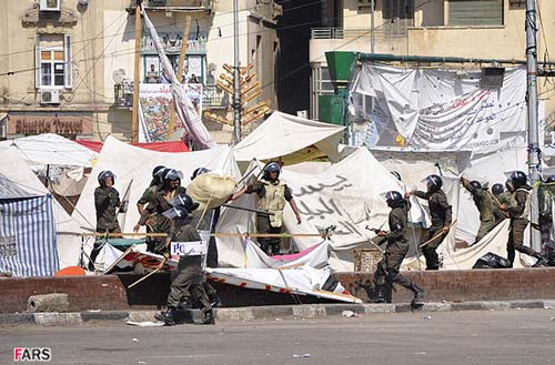 صدها نفر از نيروهاي ارتش و پليس مصر با حمله به تحصن كنندگان در ميدان التحرير چادرها و لوازم اين افراد را تخريب كردند و تعداد زيادي از فعالان سياسي حاضر در اين ميدان را دستگير كردند.