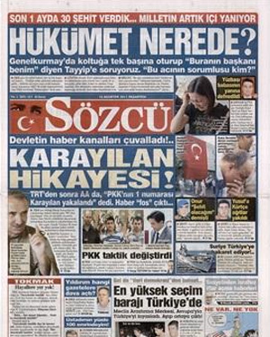 "مراد كارا ييلان" فرد شماره دوم گروه پ.ك.ك و سپس تكذيب آن را در تيتر يك خود بازتاب دادند.