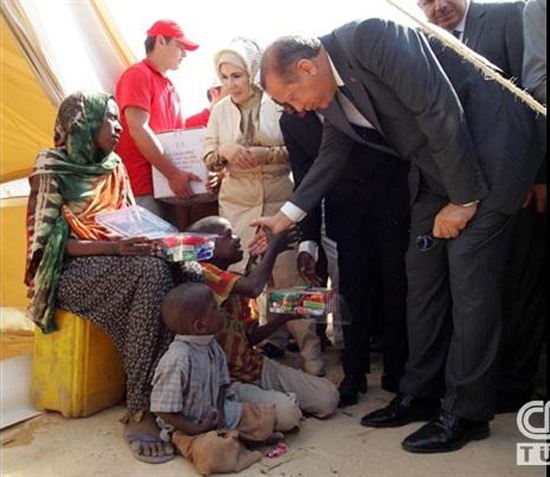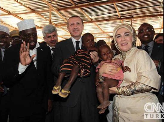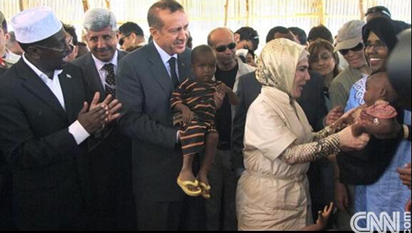 رجب طيب اردوغان نخست وزير تركيه به همراه همسرش و جمعي ديگر از مقامات دولتي اين كشور روز گذشته در صدر هيئتي وارد سومالي شد . اردوغان عالي رتبه ترين مقام خارجي است كه از زمان آغاز بحران قحطي و خشكسالي در سومالي به اين كشور سفر مي كند . تركيه 150 ميليون دلار به قحطي زدگان سومالي كمك مي كند.