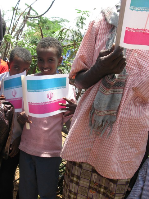 2-جهت تبلیغات کمک های ایران زیاد لازم نیست دست مردم پرچم به صورت مصنوعی بدهیم . می توانیم روی کالاهایی که می فرستیم در موقع بسته بندی روی آنها واژه "کمک ایران" به صورت عربی یا انگلیسی نوشته شود با حک پرچم ایران.آمریکا در این زمینه در کمک به کشورهای آفریقای زیاد از این موارد استفاده می کند.