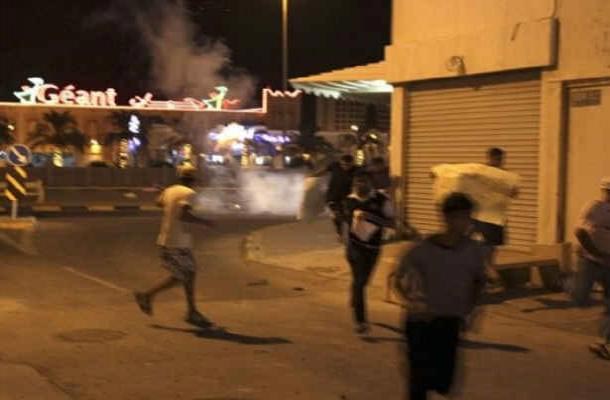 نیروهای آل خلیفه نیز در مقابل برای متفرق کردن تظاهرکنندگان بسوی آنها گلوله های پلاستیکی و گاز اشک آور شلیک کردند.