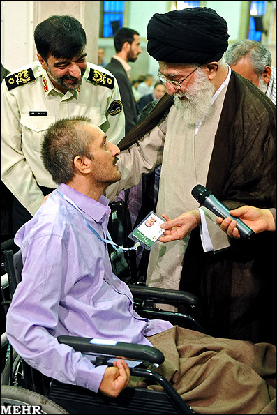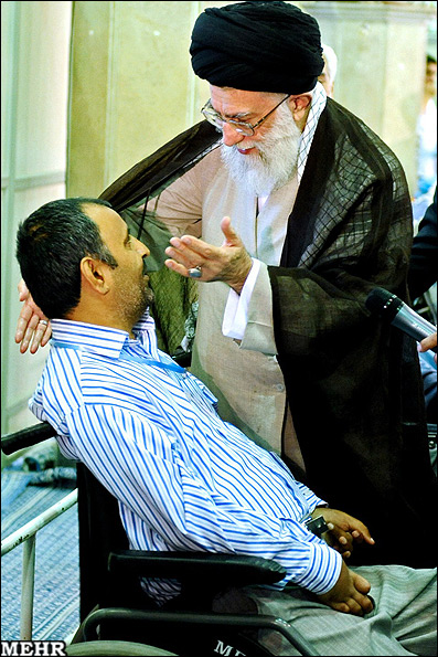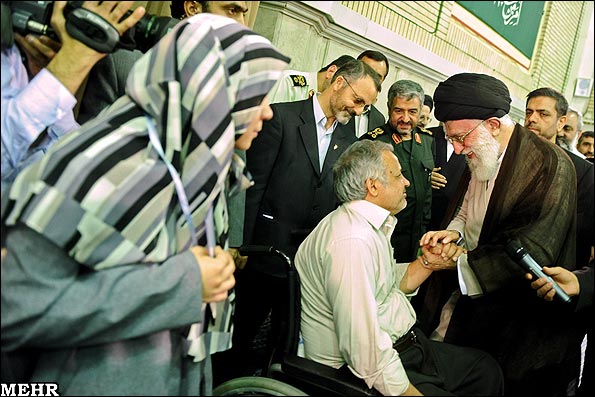 حضرت آیت الله خامنه ای با تشکر صمیمانه و ابراز احترام حقیقی به همسران، مادران، پدران، فرزندان و پرستاران جانبازان خاطر نشان کردند: خدمت صادقانه و با روی خوش به جانبازان عزیز از بزرگترین ایثارها و از برجسته ترین جهادهاست و نزد خداوند از اجری عظیم برخوردار است.