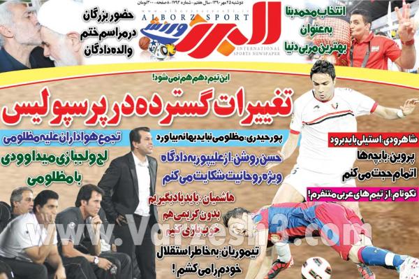 صفحه نخست روزنامه های ورزشی امروز (عکس)