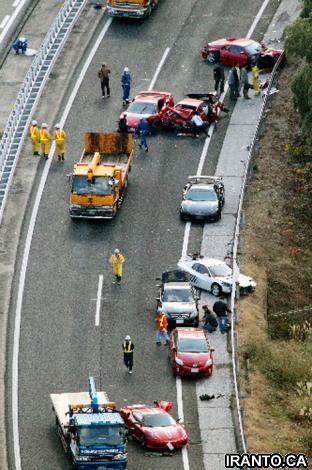 پليس ژاپن اعلام كرد در يك تصادف زنجيرهاي در جنوب اين كشور،گران قيمتترين خودروهاي سواري با هم برخورد كردند و 10 نفر نيز در اين حادثه مجروح شدند كه حال يكي از مجروحان وخيم است.
