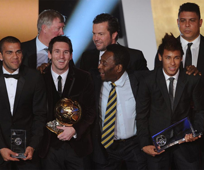 عصر ايران ورزشي - ليونل مسي در كنار پله، اسطوره فوتبال بريل، پس از دريافت توپ طلاي فيفا. پله طي چند ماه گذشته، چندين بار از مسي انتقاد كرد اما اين دو ستاره كم نظير تاريخ فوتبال، دوشنبه شب در مراسم اعطاي توپ طلاي فيفا در زوريخ سوئيس، سرانجام با يكديگر آشتي كردند.