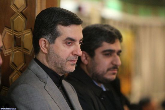 مشایی در کنار داماد خود مهدی احمدی‌نژاد در مراسم یادبود پدر زن مشایی
