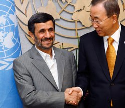 دبیر کل سازمان ملل متحد همچنین درباره برنامه هسته ای ایران ابراز نگرانی کرد و گفت: بارها با سران ایران صحبت کردم. مسئولیت برعهده طرف ایرانی است که ثابت کند هدف برنامه هسته ای اش ، صلح آمیز است.
