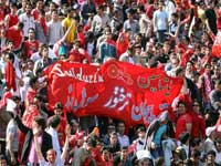 * زمانی که امیر قلعه نویی وارد زمین شد هواداران تراکتورسازی بادکنک های سفید و قرمز به هوا فرستادند.