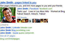 به گفته وب‌سایت eweek با استفاده از این ویژگی، وقتی کاربران برای مثال نام جان‌اسمیت را در موتور جست‌وجوی بینگ جست‌وجو کنند با دیدن صفحات لینک شده او می‌توانند فرد مورد نظر را از میان دیگر افراد هم نام او تشخیص دهند.