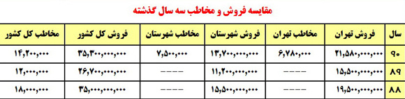 فروش سالانه: 21 ميليارد و 580 ميليون در تهران (12 درصد افزايش نسبت به 88)
