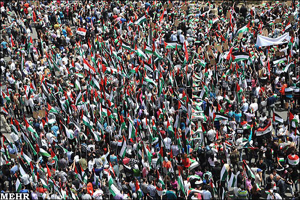 در این تظاهرات تاکید شد مردم سوریه هرگز در برابر طرحها و نقشه های توطئه گران تسلیم نخواهند شد.