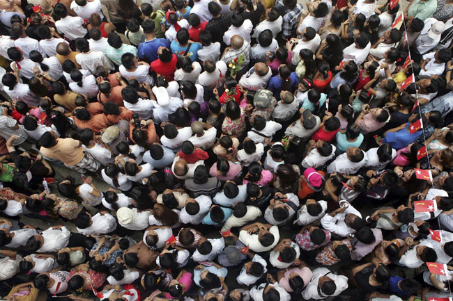 اجتماع هواداران آنگ سان سوچی رهبر دموکراسی خواهان برمه برای شنیدن سخنرانی او در مقابل دفتر مرکزی حزب "لیگ ملی برای دموکراسی" در یانگون