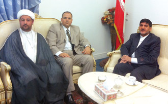 مهدی اسلامی (راست) در ملاقات با دو نماینده پارلمان بحرین در محل سفارت ایران در منامه