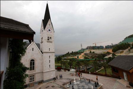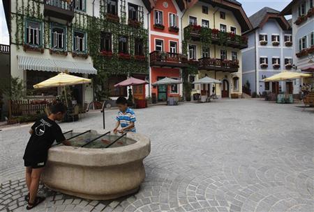 روستای کپی برداری شده در چین، در کنار دریاچه ای ساخته شده و شامل برج ساعت کلیسا، خانه های چوبی به سبک اروپایی و دیگر ساختمان ها با کاربری های متفاوت است که به سرمایه گذاران واگذار می شود.