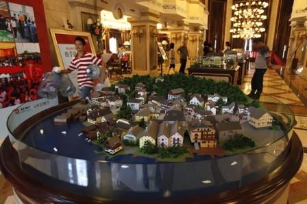 این روستای کپی برداری شده به همان نام اصلی اش در منطقه گوانگدونگ در جنوب چین ساخته شده است.