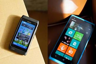 نارنجی: در عکس سمت چپ سیستم عامل سیمبین را می بینید که سریعا راه نابودی را پیمود و در سمت راست لومیا را با سیستم عامل ویندوز فون، در ابتدای راه موفقیت.